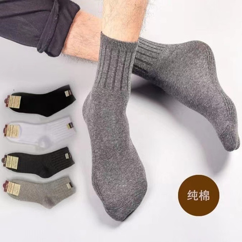 Atacado Men's Cotton Mid-Calf Socks para a Primavera e Outono Sweat-Absorvente Preto e Branco Cor Sólida Médio-ThickSocks