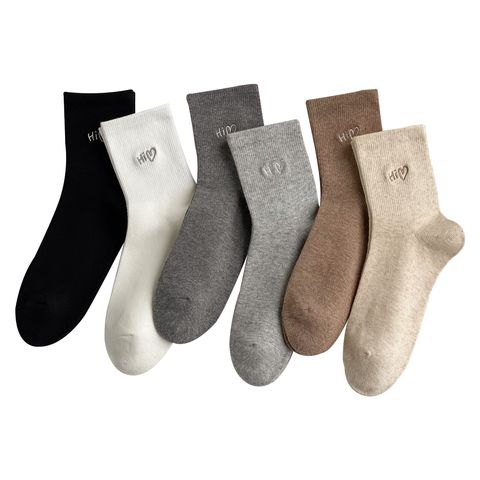 Meias de meio bezerro de algodão penteado feminino, meias de algodão de cor sólida versáteis bordadas na moda, meias quentes femininas